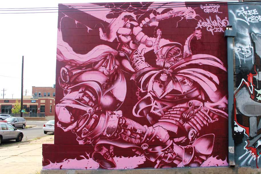 I was invited to attend Denver's Only Graffiti Art event called Colorado Crush. I was one of a artists repping the Bay Area. There were writers from all over the country which makes this event very unique. Once I found out everyone was doing letters, I decided to do something different and out of the ordinary. This piece took several days and after 6 cans of pink and 6 cans of red, this is what you have here. This is the day when I was asked by Else to get down with ICR. I was honored and I accepted.
