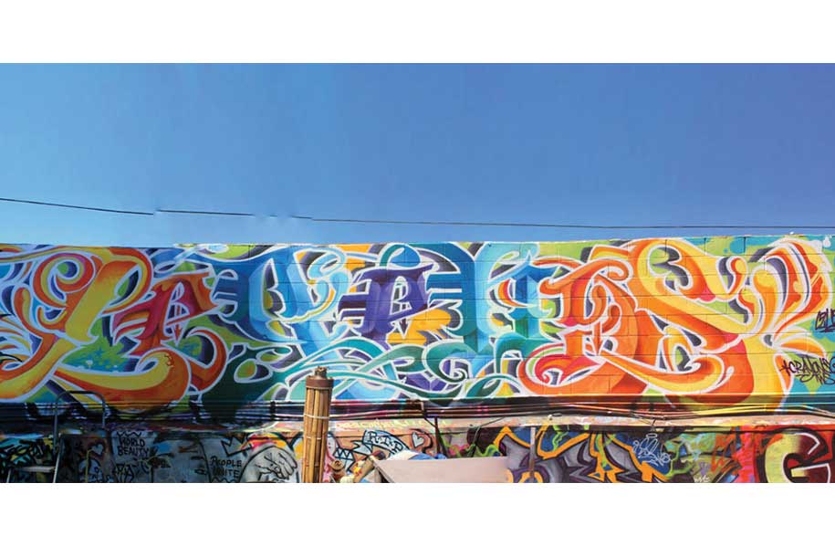 Located on a wall at Bill Wheels Skate and Surf shop in Santa Cruz. It was a collaboration piece with 3 other local writers.