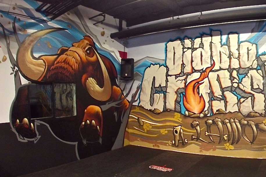 I was called in to help with my friends project. I did the mammoth on the left side of the mural. Took about several days because I also help in and around the character.