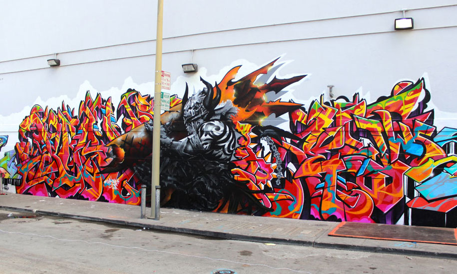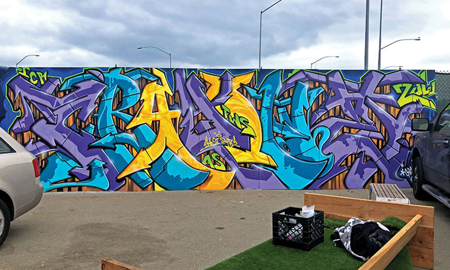 The owner of the venue asked me if i can be involved in his grand opening. I did what was comfortable for me to do. This is one of a few pieces where I got to come back and used transparency colors to accentuate highlights and shadows. Most of my paint came from 14th Street Supply. Assisted by FuryDA and PicassoTWS aka Howling Wolf. Also painted with AmendTDK.