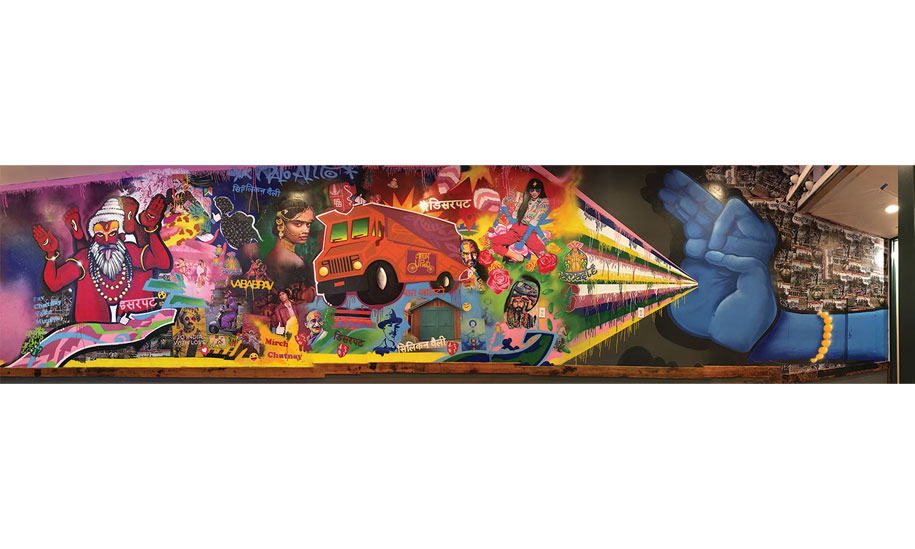 I was contacted by a local artist who had a painting gig and needed my help or was willing to go half with me to complete the project. The project was interesting in that it was my first time using all the street art mediums such as Wheat Paste, Stencil, Graffiti with the context of Bollywood. We also got to do the wall for Curry Up Now in Oakland.