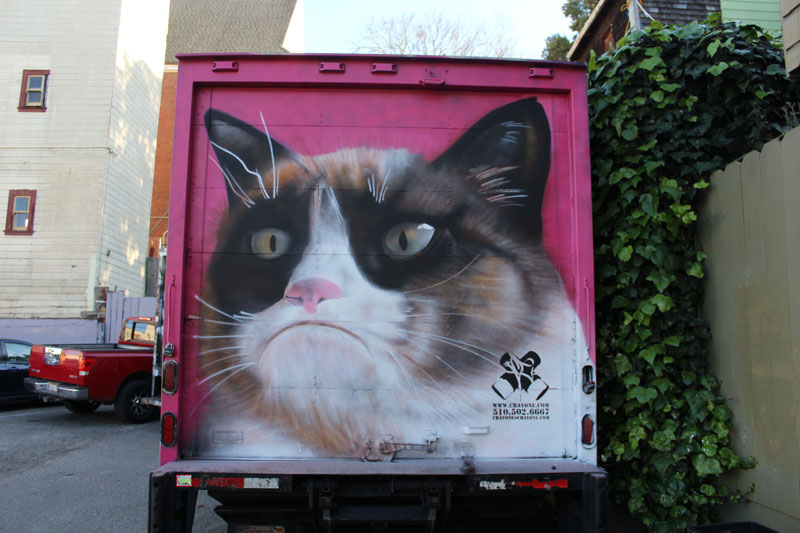 The owner of the truck invited me to paint the previous truck and he told me I could paint whatever I wanted and I choose "Grumpy Cat". Everyone from the neighborhood enjoyed it tremendously. The truck travels over the bay bridge almost every night from San Francisco to Oakland and Back. I wish I could see the commuters facial expressions.