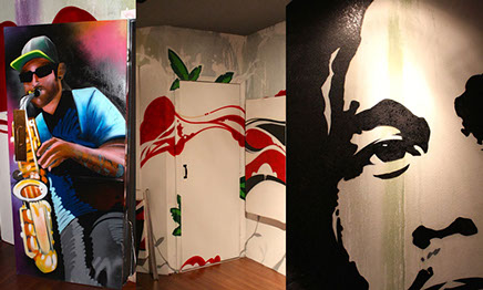 Crayone’s Aerosol Art Show is a rocking high energy performance art show by world renowned graffiti artist Crayone where he creates 5x5 foot painting in minutes to music. During a 60 minute turnkey show, Crayone can create up to 3 to 5 5x5 foot paintings of spraycan art master pieces including your company logos and more all the while igniting passion and purpose with every blast from a fat cap nozzle. This dynamic artist also has the ability to tailor his show for your target audience, and has proven his Graffiti Art Performances can transcend age and cultural boundaries. Crayone’s explosive personality has been utilized by clients like: