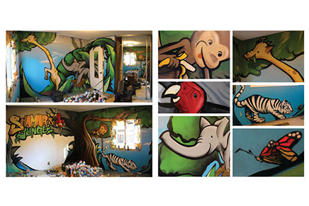 Design fee of $1,500 due prior to sketch process. A 50% non-refundable deposit is due two weeks prior to start date of painting (this allows ordering of supplies and scheduling.) Full balance is due on the final day of completion.