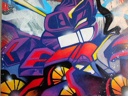 I've stared doing canvases since 1985 (See a Video from the mid-80's) but my main focus was putting art onto walls (Murals). I also knew that putting art on canvas was also another way to express myself. My recent works have been a more mixed media along with creating a mix of different styles. I am using the tools where street artists would normally use but I am also using my medium of choice which is SprayPainting and the intricate use of WildStyle lettering. All works are available through Paypal.